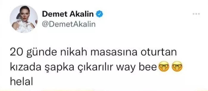 Akalın M.B için “20 günde nikah masasına oturtan kıza da şapka çıkarılır way be helal ” ifadelerini kullandı. Ünlü şarkıcının yorumu kısa sürede ilgi odağı oldu ve gündeme oturdu.